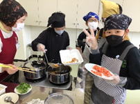 | 5年はらこめし作り 荒浜小学校では,5年生の総合的な学習の時間で,郷土について学ぶ一環としてはらこめしづくりを行っています。今年も亘理町食生活改善推進員の皆様に御指導と御協力をいただきました。話を真剣に聞き,グループの友達と協力して,おいしいはらこめしをつくることができました。「今まで食べたはらこめしの中で一番おいしかった。」「鮭の解体が圧巻だった。」「優しく丁寧に教えてくださったおかげで上手に作ることができた。」など,喜びと感謝の感想がたくさん出る活動となりました。 | ![]() ![]() |