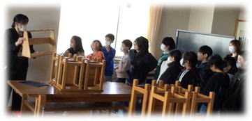 | 2年キャップハンディ体験 1月15日(月),体育館で車いす体験を行いました。社会福祉協議会の方々が,分かりやすく車椅子の使い方を説明してくださいました。子どもたちは真剣に話を聞き,説明の後実際に一人で乗ってみました。段差のないところでは車椅子を進めることができましたが,マットを用いた段差のところではうまく進めないことや,狭い道では操作が難しいことが分かりました。子どもたちからは,「車いすを利用している人の気持ちが分かった。」「車いすを利用している人を見かけたら親切な行動をしたい。」など,素直な気持ちを聞くことができました。子どもたちにとって,誰もが生活しやすい社会について考えるよい機会となりました。 |